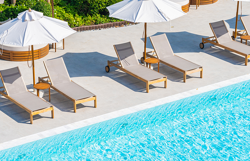 리조트 : 휴양을 목적으로 할 때 이용하기 적합한 숙소로 수영장, 스파 등 다양한 레저 시설 포함.
