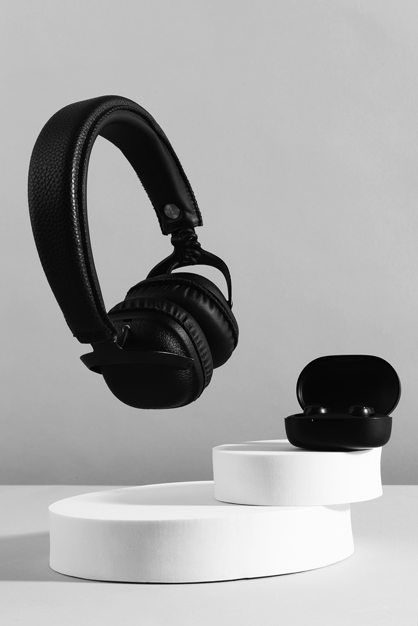 헤드셋 : 귀를 덮는 형태의 제품으로, 오버이어(귀를 완전히 덮는)나 온이어(귀에 걸치는) 디자인이 있다.