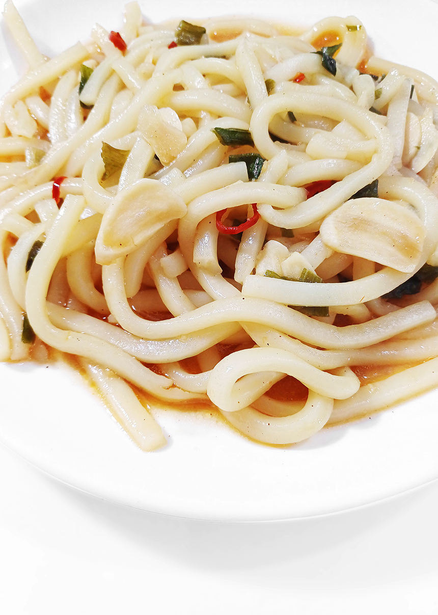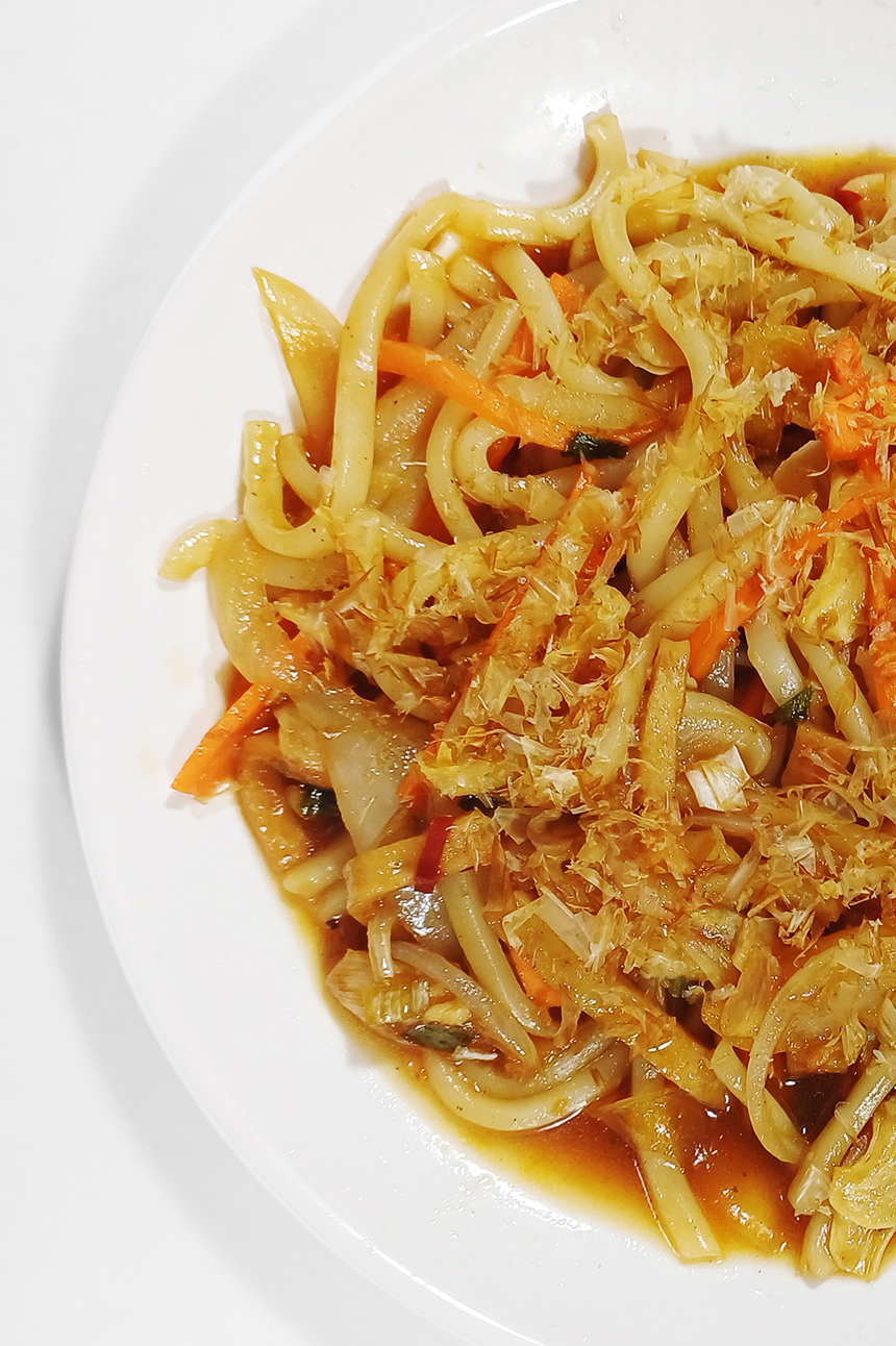 먹다 남은 가다랑어포도 처리할 겸, 야끼우동도 먹고 싶어서 풀무원 갈릭 데리야끼 볶음우동을 사서 먹었다.