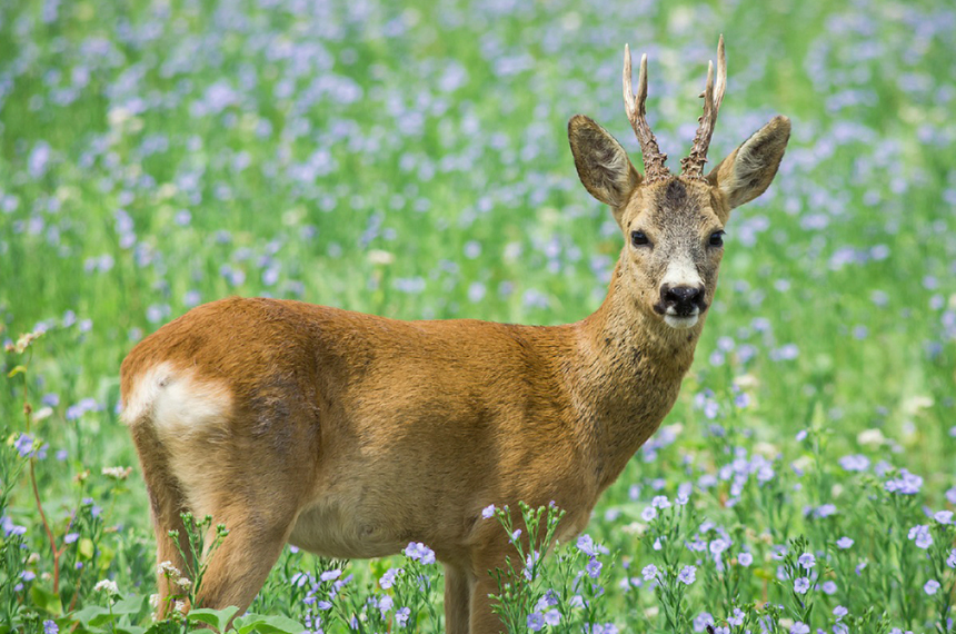수컷 노루 : 수컷 노루는 머리 위에 뿔이 있으며 해마다 새로 자라난다.