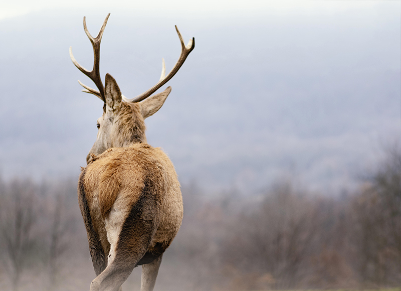 수컷 붉은 사슴 : 머리 위에 크고 갈라진 뿔이 있으며, 해마다 새로 자라난다.