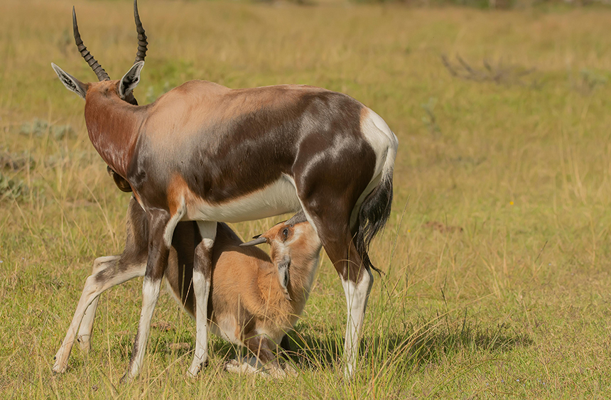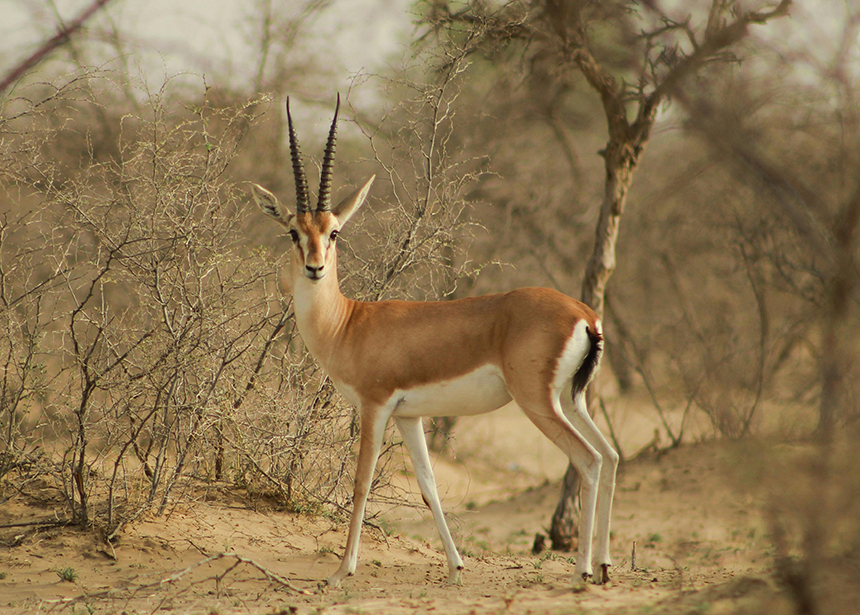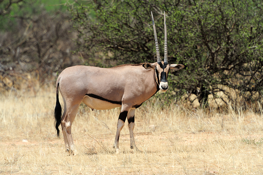 가젤, 오릭스 등에게서 볼 수 있으며 끝이 약간 휘어진 형태로 나타나기도 하지만 대체로 갈라지거나 직선으로 자라기 때문에 단순해 보이는 것이 특징이다.