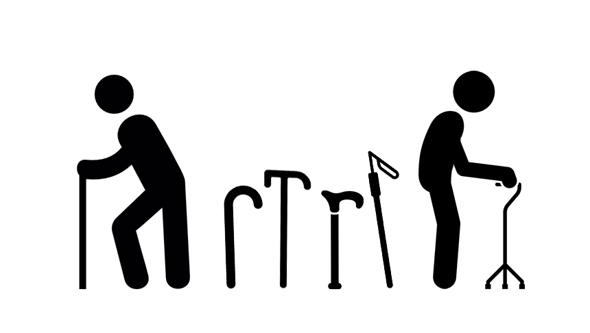 보행과 거동이 불편한 노인을 돕는 지팡이 종류에는 일자형 지팡이, T자형 지팡이, 다족 지팡이, 접이식 지팡이 등 다양한 지팡이가 있다.