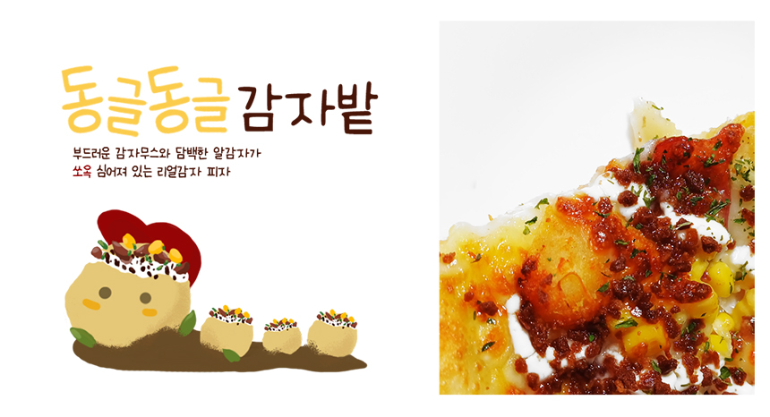 평소 포테이토 피자 좋아하고 많이 달지는 않지만 안 짠 피자를 먹고 싶다면 동글동글 감자밭 피자 추천!