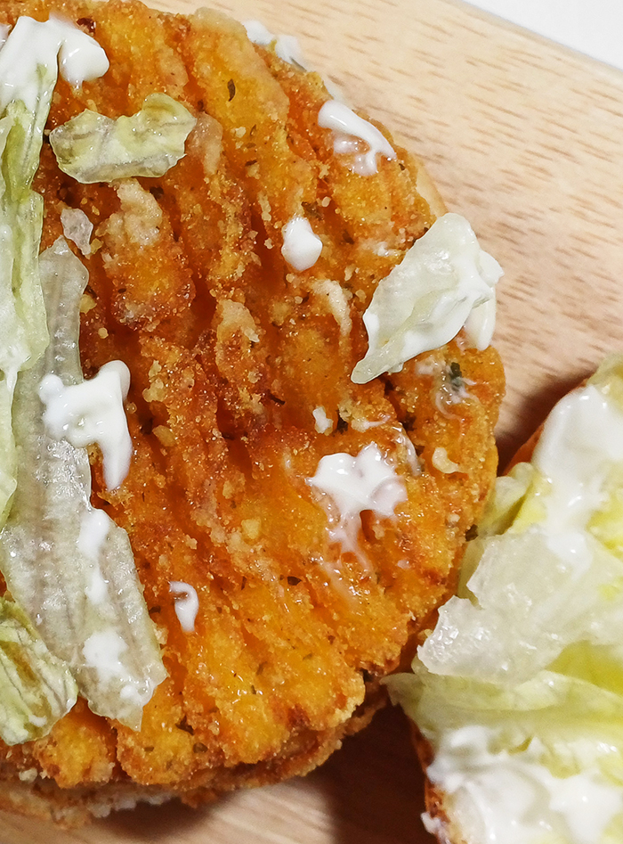 원래 전통적으로 치킨버거 패티도 다 다른 패티처럼 동그란 모양이었는데.