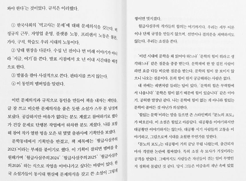 11명의 작가의 단편들을 볼 수 있었고 동인의 몇 가지 규칙처럼 한국사회의 먹고사는 문제를 다룬 내용이라 공감하며 읽을 수 있었다.