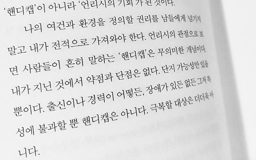 누구에게나 어디에나 있는 가능성과 잠재력을 그냥 지나치지 않고, 재발견하고 재정의하는 것이 내가 말하는 언리시다.