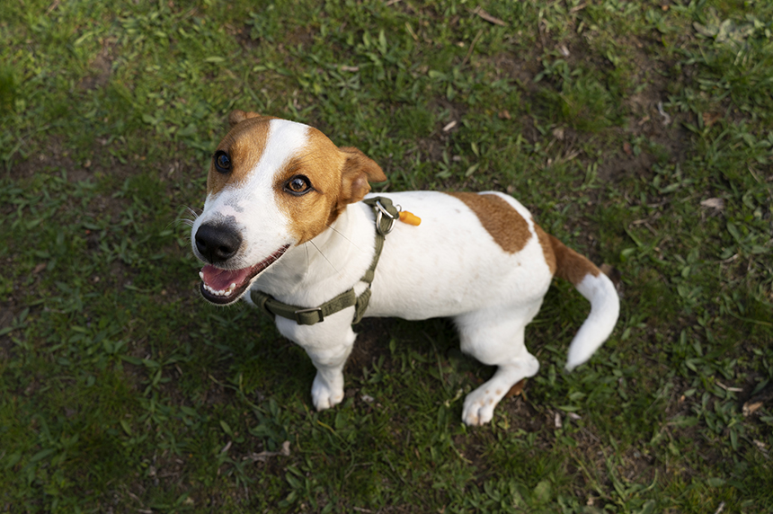 강아지는 보호자를 보고 반가울 때 귀를 뒤로 젖히며 애정을 표현한다.