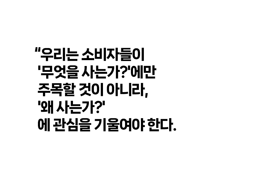 우리는 소비자들이 '무엇을 사는가?'에만 주목할 것이 아니라, '왜 사는가?'에 관심을 기울여야 한다.