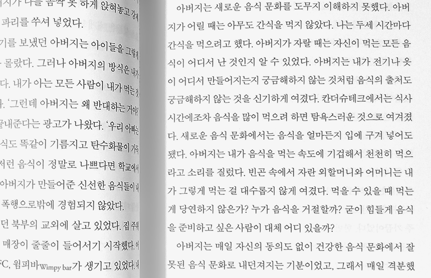 모든 게 낱낱이 찢어발겨져서 부품으로(혹은 부품의 '모사품'으로) 바뀐 다음 식품으로 재조립됐다.
