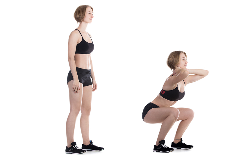 엉덩이를 뒤로 빼며 앉아야 무릎에 과도한 부담을 줄일 수 있으며 엉덩이와 허벅지 근육을 제대로 자극하는 데 도움이 되기 때문이다.