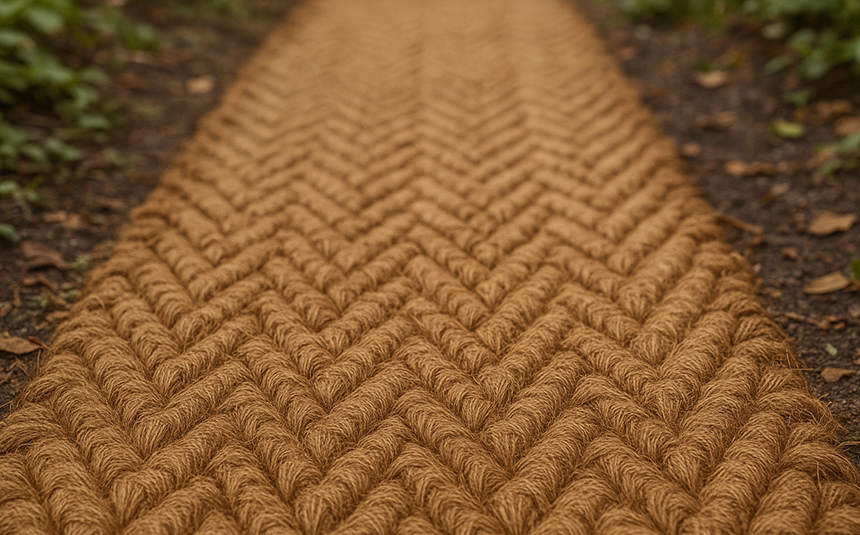 야자매트는 야자섬유로 만들어져 시간이 지나면 자연 분해되기 때문에 자연과 조화를 이루는 이점이 있다.