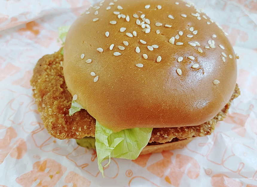 그런데 치킨 패티 자체는 닭가슴살을 통으로 튀겨 넣은 듯한 바삭한 느낌은 아니었다.