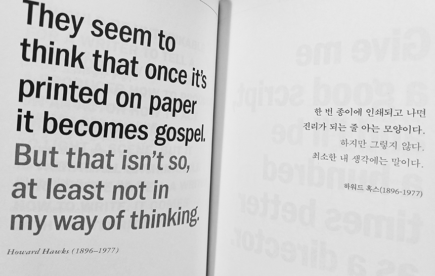인용문이나 명언, 어록 형식의 글이라 부담 없이 넘겨볼 수 있지만 짧은 몇 문장 안에 영화의 본질을 이야기하는 적확함이 느껴지기도 한다.
