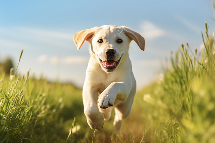 2. 아기와 개가 당신을 향해 뛰어오고 있다.