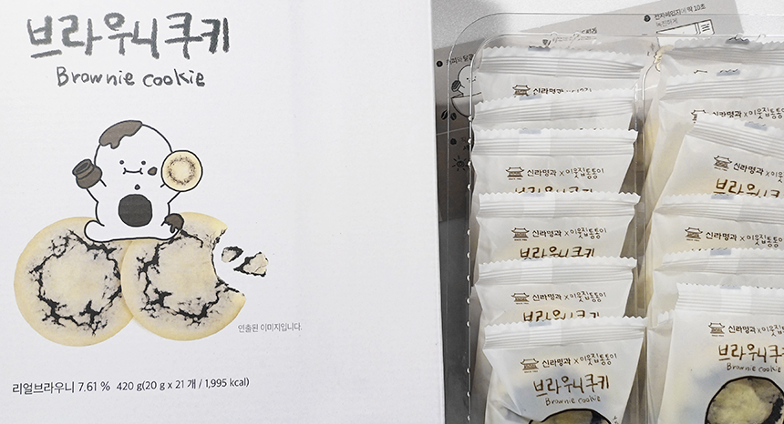 신라명과에서 판매하는 이웃집통통이 브라우니 쿠키를 먹어봤다.