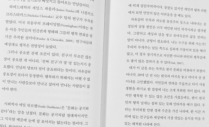 하지만 타인이 모든 판단 기준이 되면 내 행복마저도 왠지 남들로부터 인정받아야 될 것 같은 느낌이 든다.