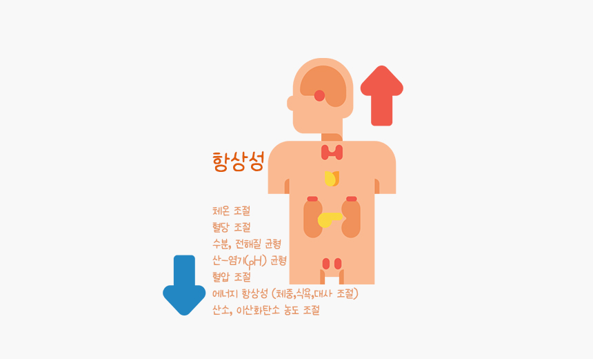항상성이란 신체가 몸속 상태를 일정하게 유지하려는 생물학적 메커니즘을 말한다.