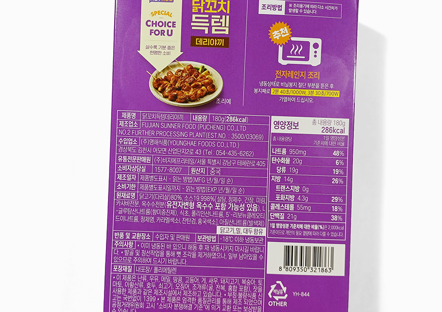 그리고 구입할 때 겉면에 중국(OEM)으로 표시되어 있긴 했는데 안전하게 판매되더라도 개인 선입견으로 인해 제조업소가 중국 관련이라 계속 구입해 먹게 될 것 같진 않다.