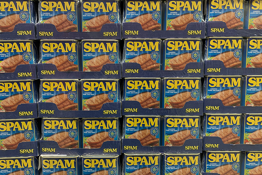 한편 스팸하면 떠오르는 악성 메일을 스팸이라고 하는 이유는 1970년대 영국 코미디 몬티 파이선(Monty Python)에서 스팸 통조림이 반복적으로 등장하는 장면에서 유래했다.
