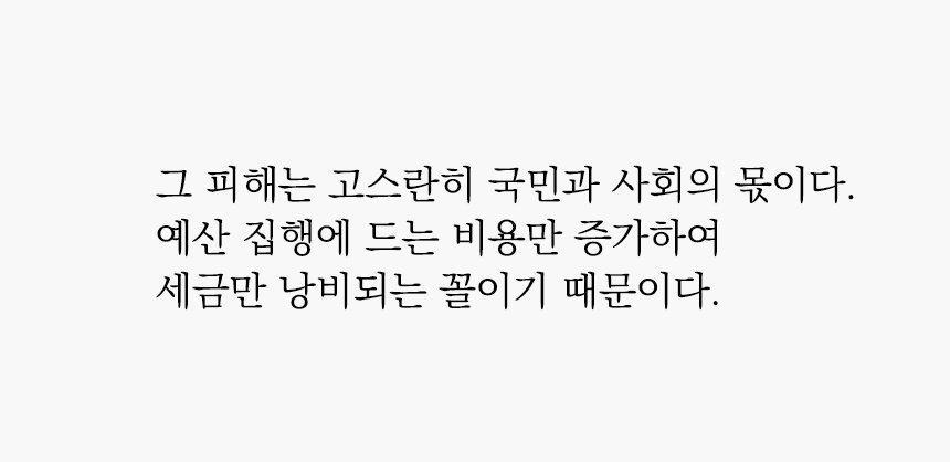 그러한 사고방식이 있으니 소위 말해 나랏돈은 먼저 빼 먹는 자가 임자라는 말이 괜히 있는 것도 아닌 듯하다.