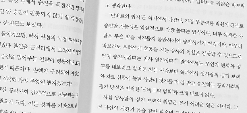 겉으로는 공익을 위한 체계를 자처하면서도 대다수의 관료가 자신이 출세를 위해 영리하게 움직이며, 정작 본질적인 일은 그만큼 치열하게 외면하는 기형적인 세계가 바로 공직사회다.