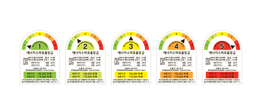 1등급 : 전기요금이 가장 적게 나오는 최고 효율 제품.