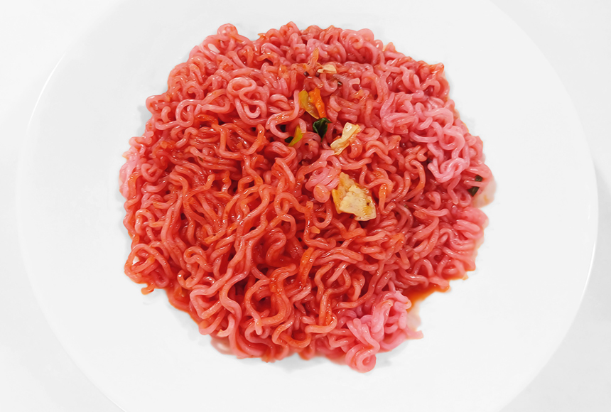 그런데 거의 아무 정보없이 산 거라 면이 핑크색 느낌인지 몰랐는데 봉지를 열어보니 일반 면 색과 달랐다.