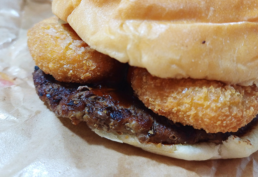 물론 반을 잘라봤더니 당연히(?) 그렇게 흘러내릴 정도로 치즈 가득한 건 아니었지만, 햄버거에 치즈스틱 같은 거 넣은 것보다는 이런 메뉴가 나은 것 같다.