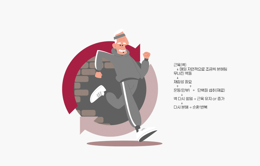 이런 단백질(근육)의 분해와 합성은 벽돌을 쌓는 일에 비유해볼 수도 있다.