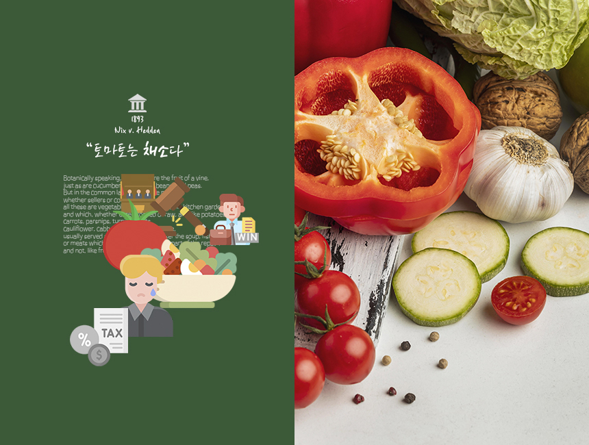 그러나 미국 대법원은 토마토가 식물학적으로는 과일일지라도 일반적으로 식사에서 조리되어 먹는 식재료라는 점에서 채소로 보는 것이 타당하다며 토마토를 채소로 판결했다.