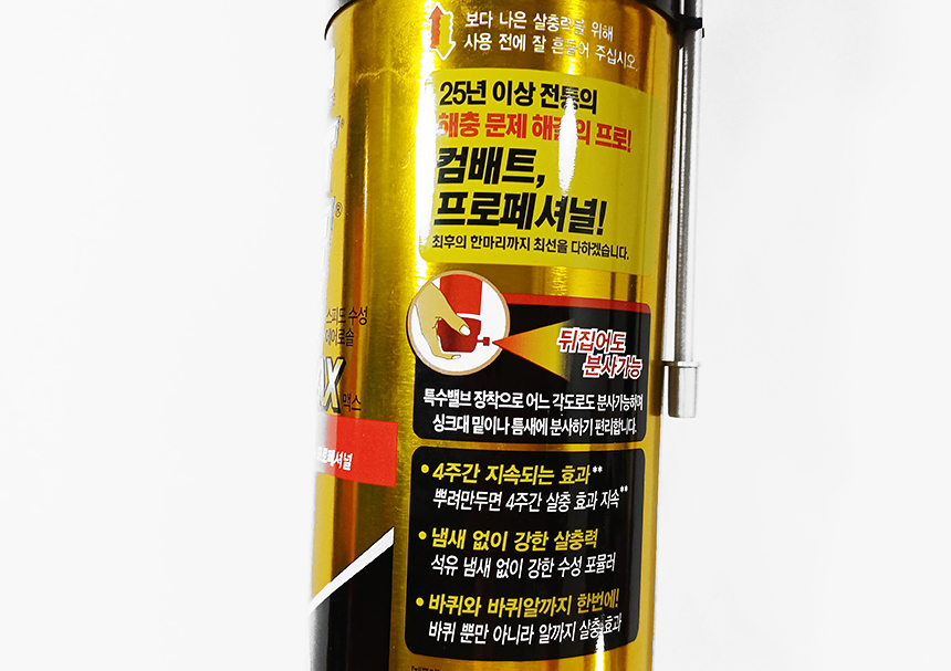 | 항목 | 컴배트 스피드 에어로졸 | 컴배트 맥스 수성에어로졸 |