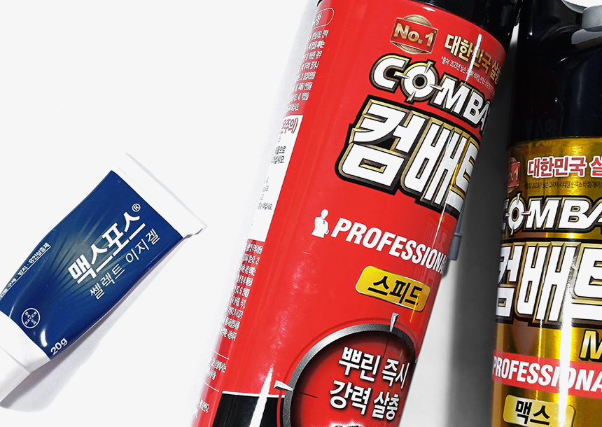 또한 성충에 비해 바퀴벌레 새끼인 유충은 맥스포스 겔을 안 먹거나 섭취량이 적어 효과가 없어보이는 면이 있으므로 보조적인 예방 수단으로 뿌려놓으며 사용하고자 할 때는 컴배트 맥스를 사용하는 것도 좋을 것으로 보인다.