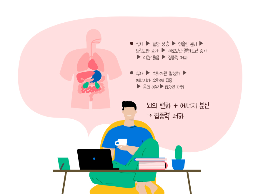 밥을 먹고 나면 집중력이 저하되는 이유는 뭘까.