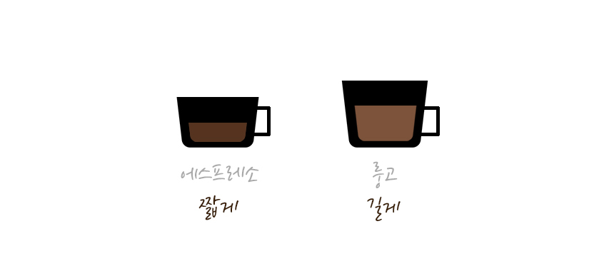 쉽게 이해해 에스프레소와 룽고의 큰 차이는 추출시간과 양이다.