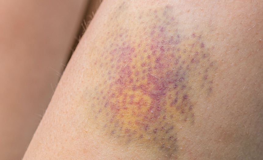 가벼운 타박상: 혈관이 거의 손상되지 않아 일시적으로 혈류가 증가하면서 피부가 붉어지는 정도로 끝난다.