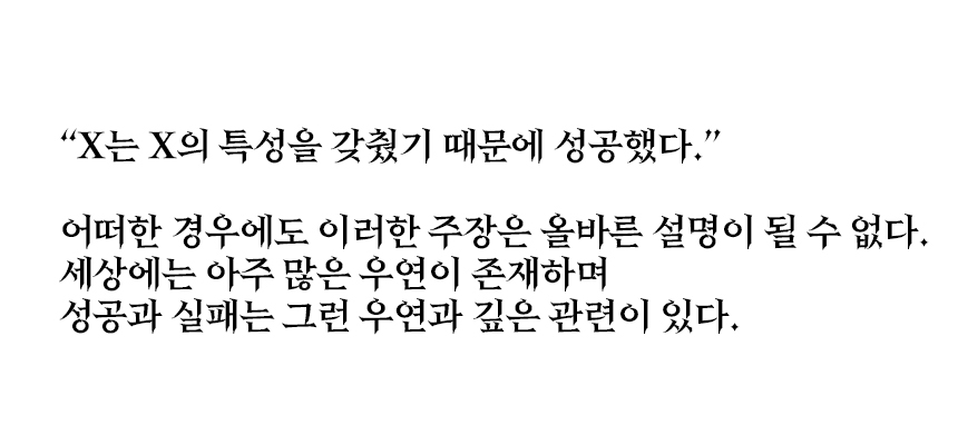 세상에는 아주 많은 우연이 존재하며 성공과 실패는 그런 우연과 깊은 관련이 있다.