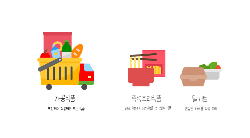 하지만 밀키트는 비교적 뒤에 신설된 간편조리세트로 넓은 의미의 가공식품 유형에는 포함되는 범위가 제한적인 편이다.