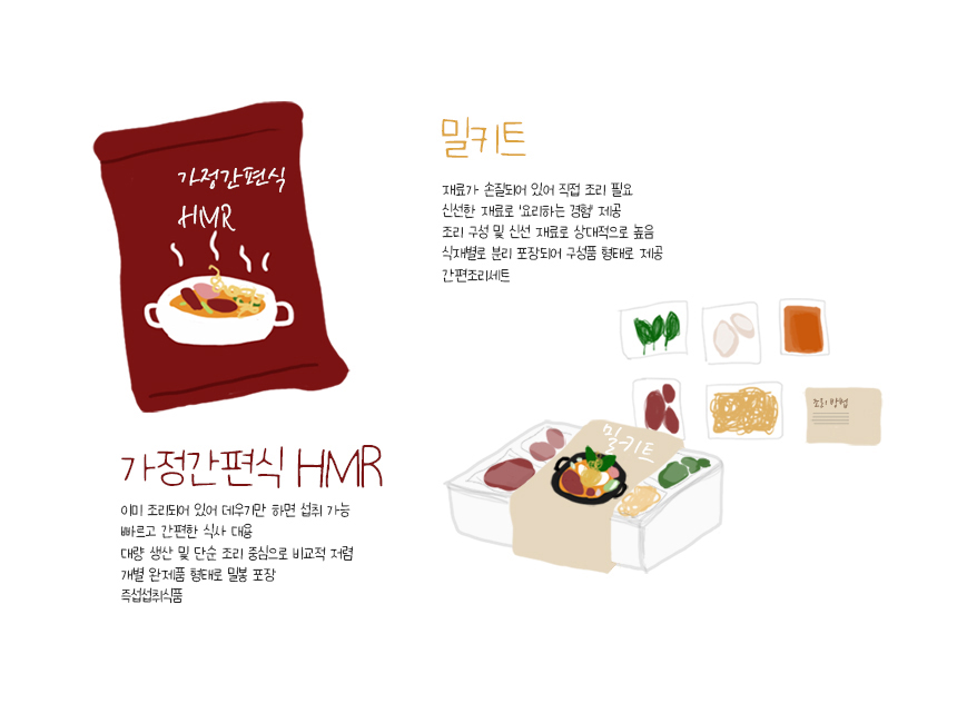 | 가정간편식(HMR) | 밀키트(Meal Kit) | |