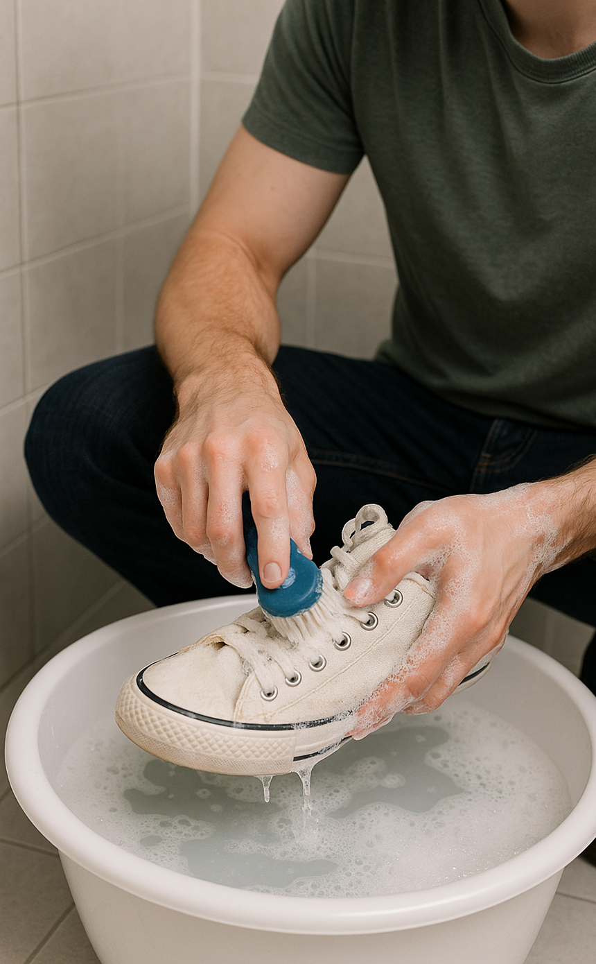 운동화를 세탁할 때에는 먼저 솔로 흙과 먼지를 털어내고 끈과 깔창을 분리한 뒤 중성세제를 희석한 물에 세척한다.