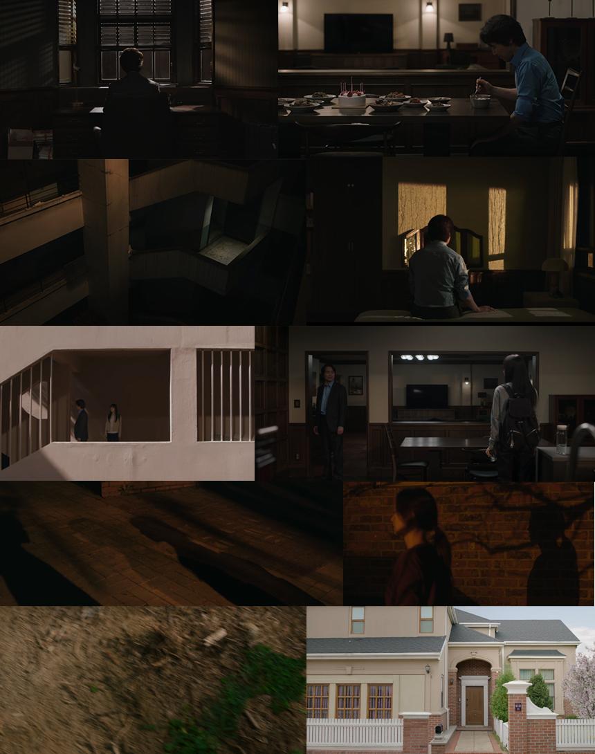 예를 들어 벽의 그림자라든가 취조실 같아 보였던 집의 구조들.