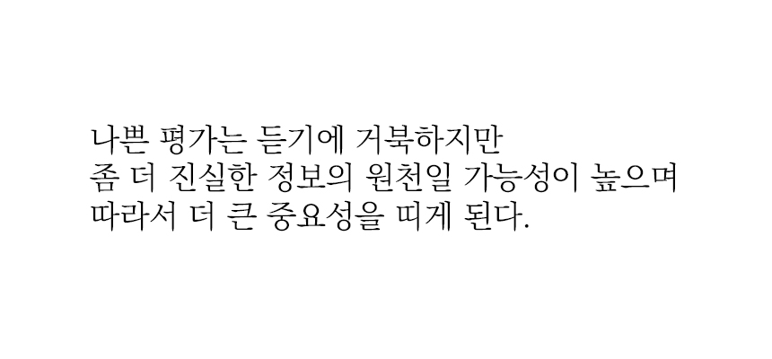 그럼에도 불구하고 우리가 타인의 평가를 꺼려하는 것은 나쁜 평가를 받을 가능성 때문이다.