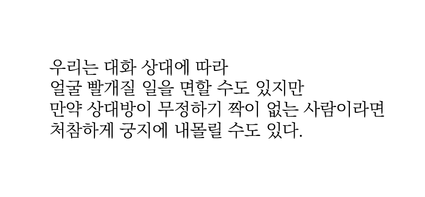 우리는 대화 상대에 따라 얼굴 빨개질 일을 면할 수도 있지만