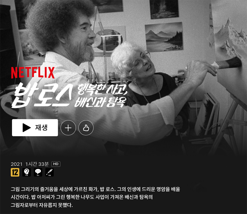 예술가에 관한 영화 보고 싶어서 찾다가 넷플릭스에서 밥 로스 다큐멘터리를 봤다.
