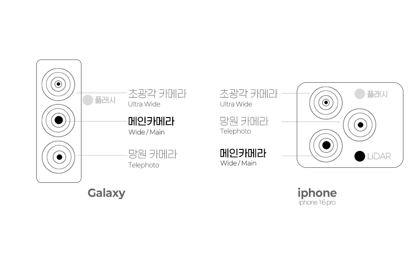 보통 갤럭시, 아이폰의 메인 카메라 위치는 가운데, 상단이나 아래에 위치한다.