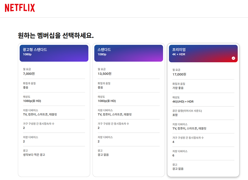 구독 서비스의 광고형 요금제는 가격이 낮다.