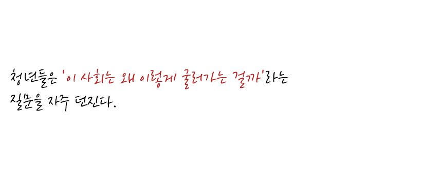 청년들은 '이 사회는 왜 이렇게 굴러가는 걸까'라는 질문을 자주 던진다.