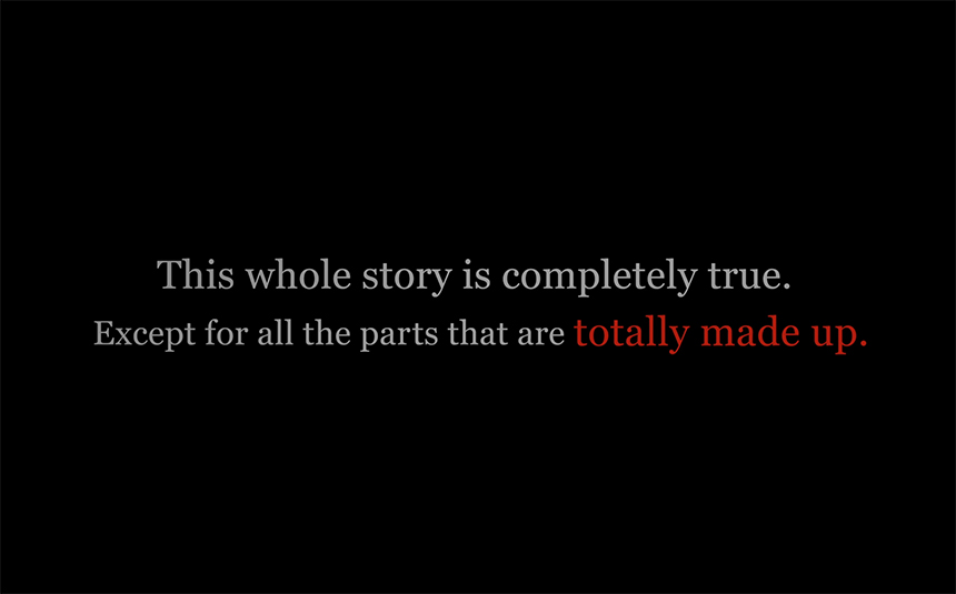 "이 모든 것은 다 실화다. 완전히 꾸며낸 부분만 제외하고."