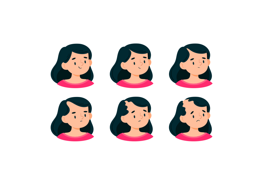 탈모가 되면 모발이 가늘어지고 힘이 없어지며 하루에 머리카락이 100개 이상 빠지기 시작한다. 또한 두피가 건조하고 비듬이 생기기도 한다.