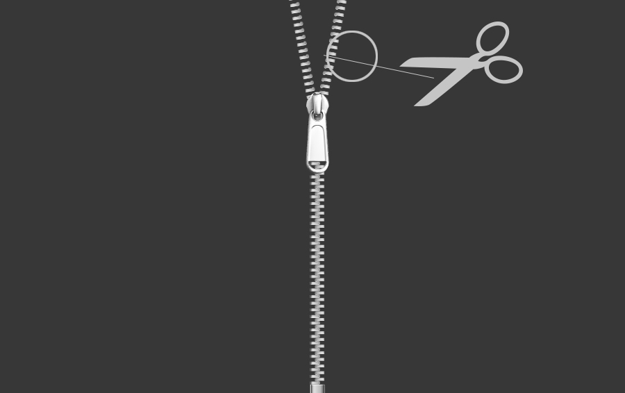 지퍼가 막음쇠 고장 등으로 완전히 빠진 게 아닌 한쪽만 빠진 경우라면 열고 닫는 부분에 가까운 이빨 부분을 가위나 칼로 살짝 잘라준 다음 다시 끼우면 지퍼가 잘 들어갈 수 있다.